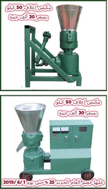 1- مكبس انتاج وتصنيع أعلاف صناعة مصرية 100 % من تصنيع المجموعة بماتور 3 حصان 2 فاز كهرباء 220 فولت بطاقة انتاجية ما بين 50 الي 80 كيلو في الساعة ويركب علي المكبس نوع الداي الذي يرغب فيه علي حسب نوع مزرعته دواجن أو تربية مواشي وإناث ماشية وفي حالة الدواجن يركب علي المكبس داي ( 3مم أو 4 ملي ) وفي حالة الثروة الحيوانية تربية الماشية وإناثها يركب علي المكبس داي ( 8 أو 9 ) لتربية الثروة الحيوانية .